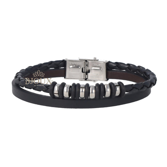 Bracciale uomo treccia in cuoio con rondelle acciaio