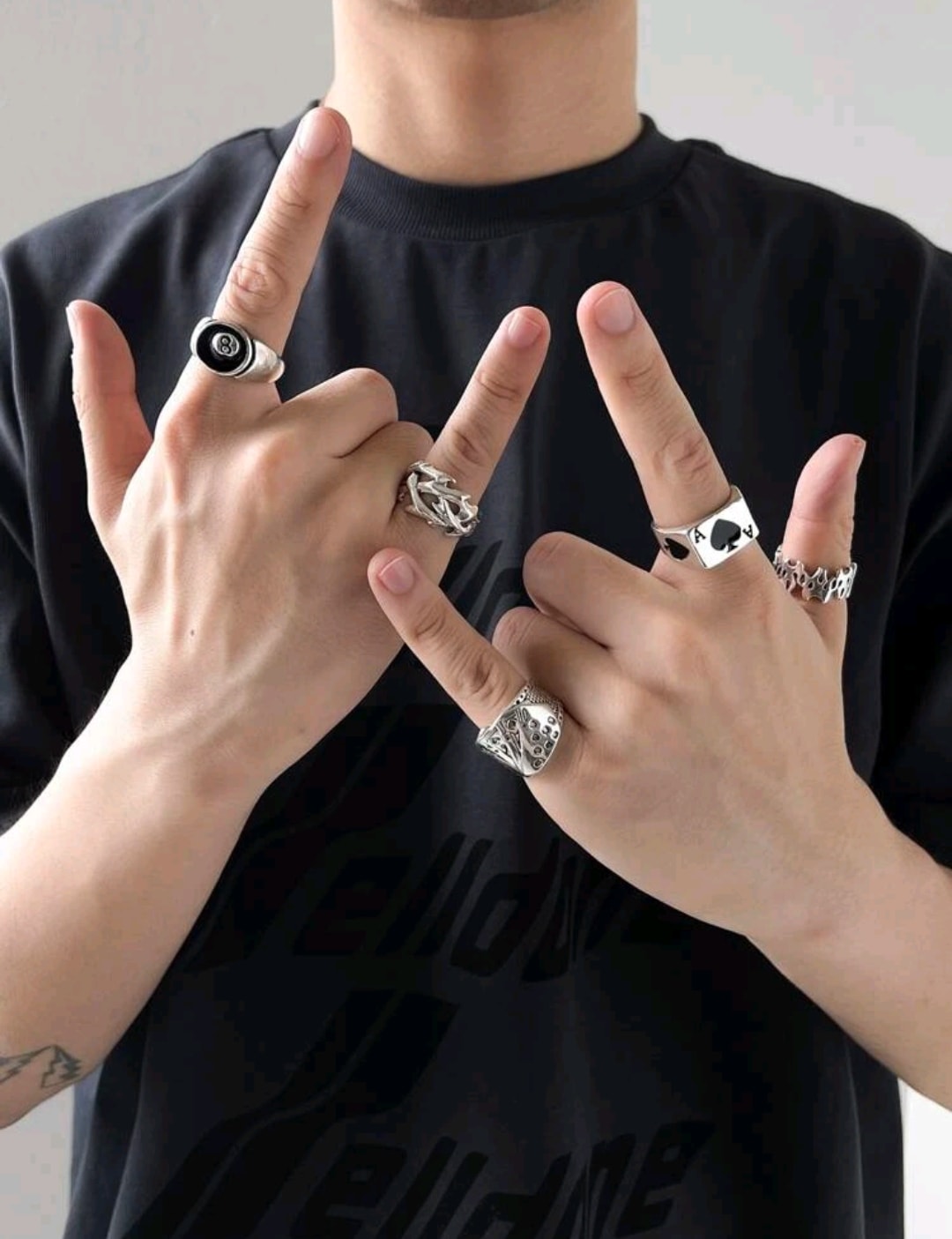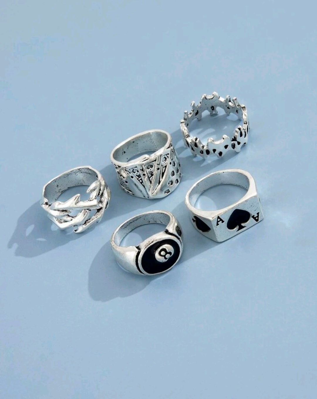 5 Anelli uomo stile poker in acciaio inossidabile disponibili diversi stili